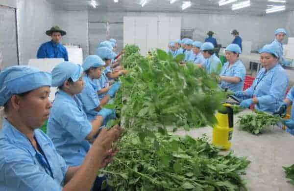 | Công nhân sơ chế rau trước khi xuất khẩu sang EU bằng đường không tại TP.HCM – Ảnh: Trần Mạnh |