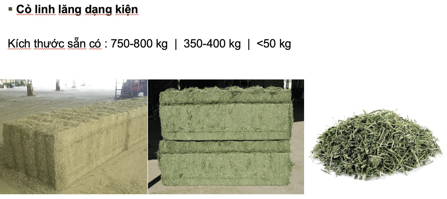 - 50% dành cho cỏ linh lăng sấy khô