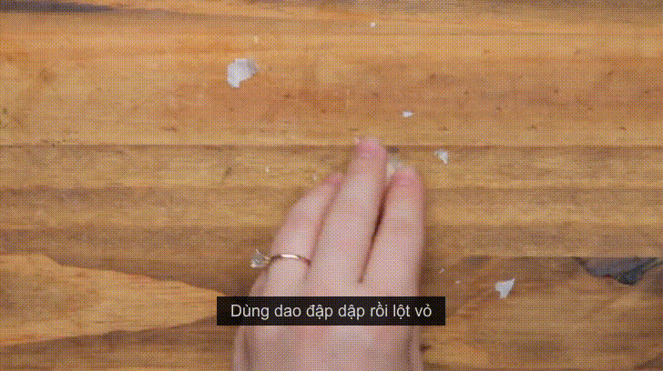 Dùng dao cắt 2 đầu của tép tỏi rồi, đè mạnh xuống. Lúc này vỏ đã tự động tách ra khỏi tỏi và bạn chỉ cần bóc ra thôi.
