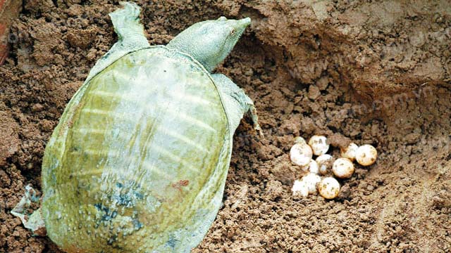 Ba ba đẻ ban đêm, khi đẻ xong chúng tự lấp đất chôn trứng để lại dấu vết ổ trứng. Có thể thu trứng ngay vào sáng hôm sau hoặc vài ngày sau. Khi thu trứng xong phải đưa ngay vào lò ấp. Lò ấp trứng xây vách cao 40-50cm, đổ cát khô cao 30cm. Ở 4 góc để sắn 4 thau nước muối (nồng độ 2%) mặt thau chôn sâu bằng mặt cát, mục đích là để ba ba vừa nở ra (sau 50 ngày ấp) là bò chui lọt vào thau nước muối nhằm sát trùng rốn của ba ba. Nếu nuôi ba ba đẻ trong điều kiện sản xuất nhỏ, số lượng trứng ít, không cần xây lò ấp trứng, có thể đem trứng ba ba ấp trong thau lớn được chuẩn bị tương tự như với lò ấp.