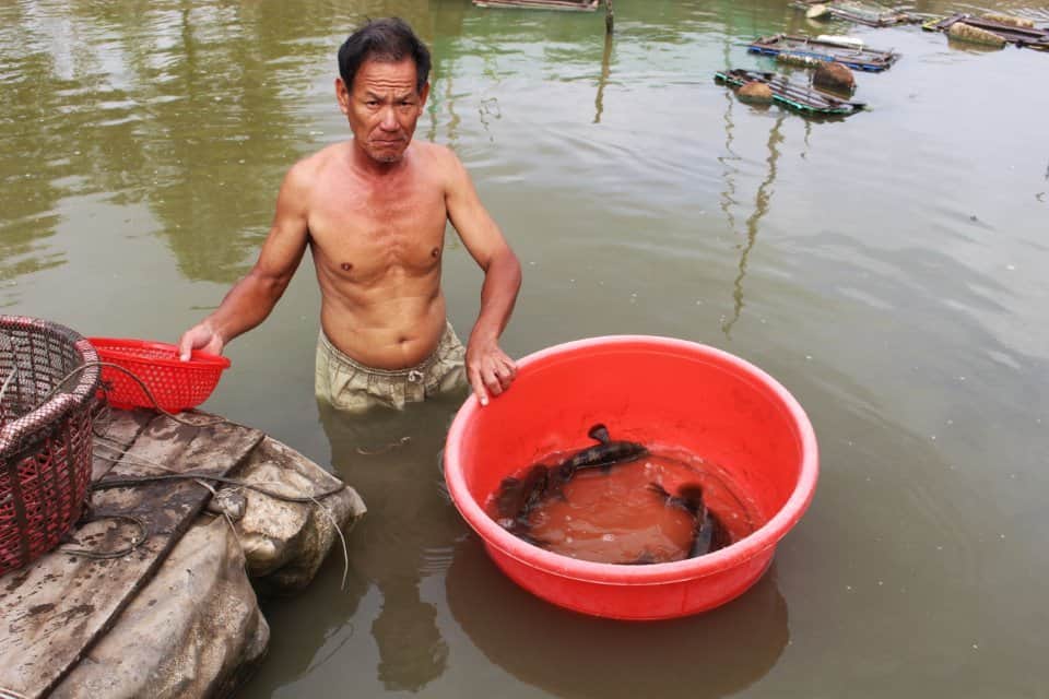 Đối với việc cung cấp thức ăn, ông Bá nói rằng ngoài việc sử dụng cá phân cắt nhỏ, phù hợp với kích thước của cá ở từng giai đoạn phát triển, cá con khi mới đem về cần được cho ăn thức ăn xay nhuyễn cộng với tấm, cám nấu. Đồng thời, cần thay nước ao 1 lần mỗi tuần từ 30-50% lượng nước hiện có trong ao để đảm bảo môi trường nuôi cá ổn định.