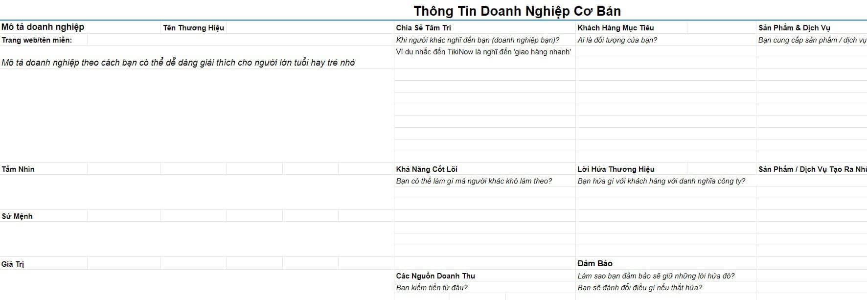 Bên dưới, tôi sẽ chia sẻ các ví dụ tham khảo về tầm nhìn và sứ mệnh của một số công ty nổi tiếng tại Việt Nam. Tuy nhiên, tôi mong muốn các bạn có thể nắm rõ hơn về quy trình hình thành các bản tuyên bố này. Để làm được điều đó, tôi chuẩn bị 1 mẫu Spreadsheet miễn phí với các câu hỏi định hướng để bạn tự điền thông tin.
